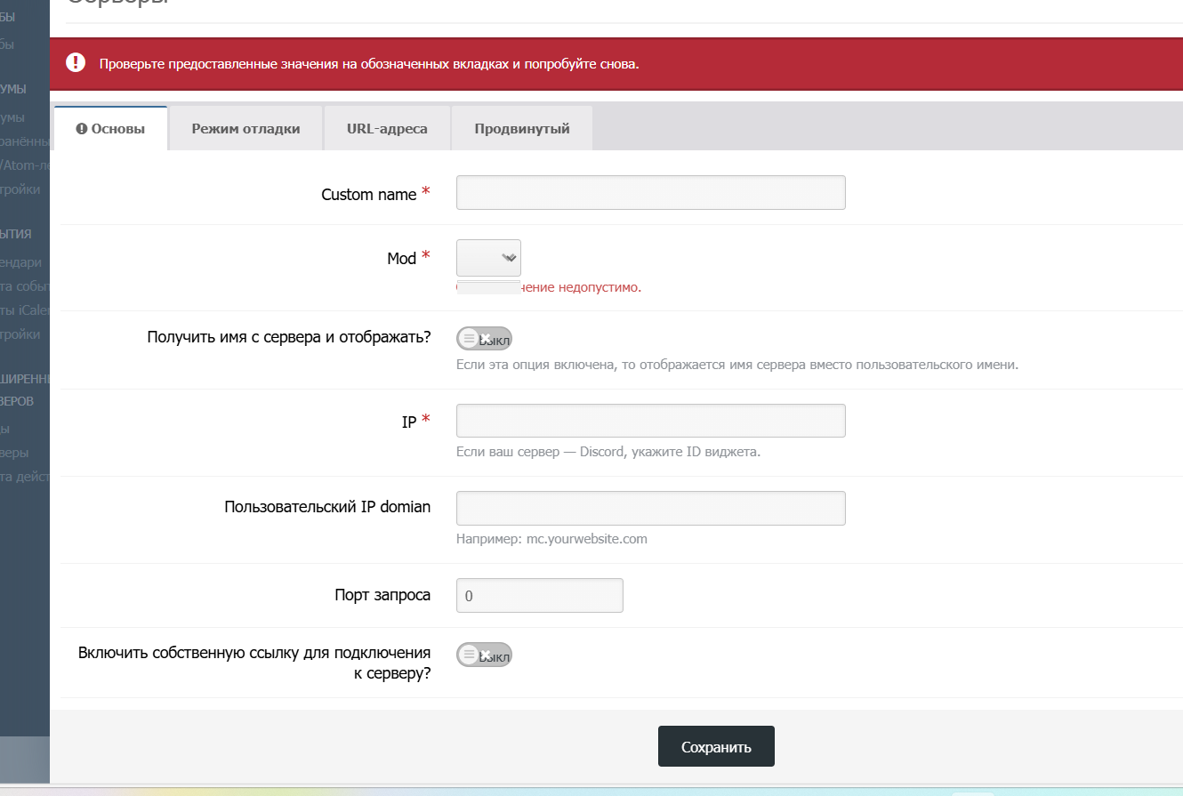 проблема с Advanced Server List