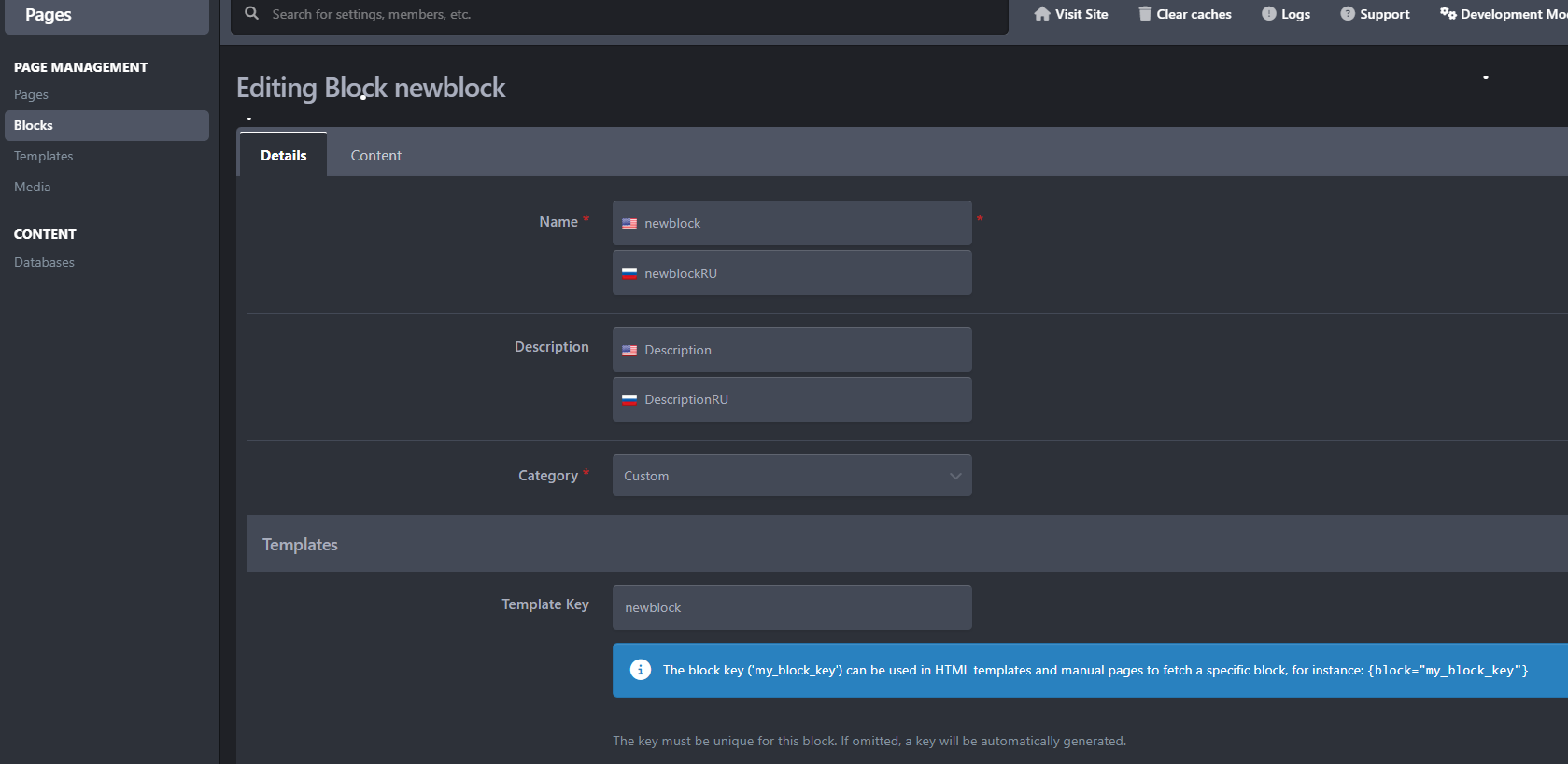 Пользовательский блок WYSIWYG для каждого языка (RU/EN)